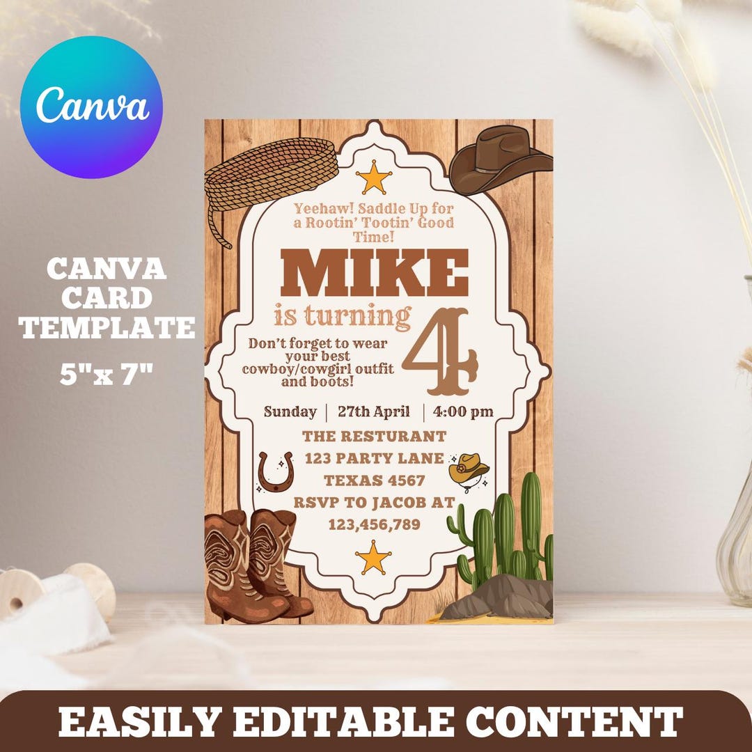 Editable Cowboy Themed Western Birthday Invitation Digital - Etsy ...