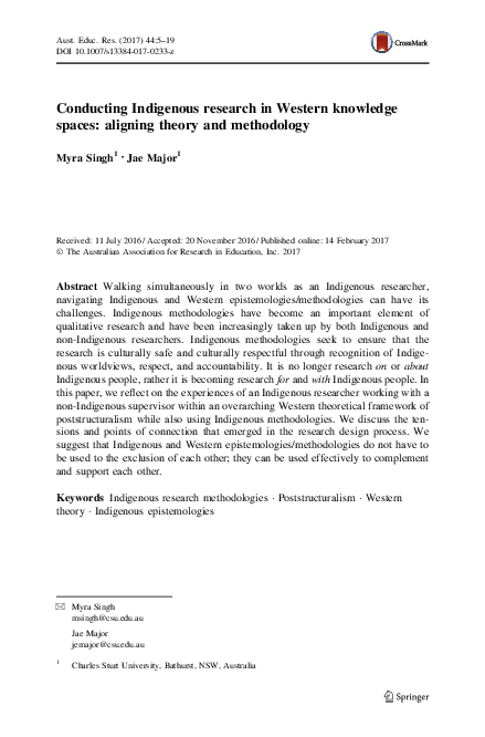 (PDF) Conducting Indigenous research in Western knowledge spaces ...