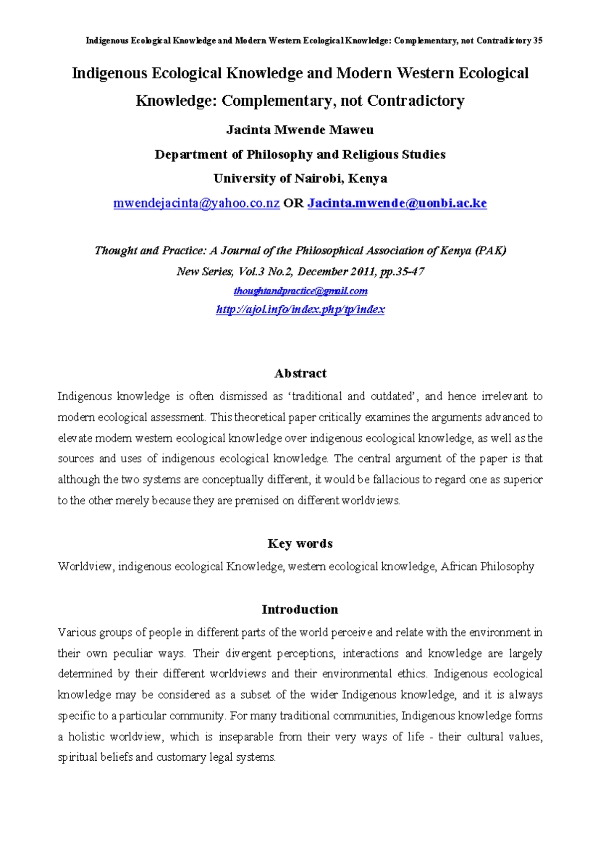 Can Traditional Indigenous Knowledge Coexist with Western Knowledge ...