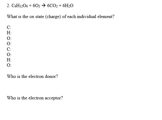 Solved 2. C6H12O6+6O2→6CO2+6H2O What is the ox state | Chegg.com