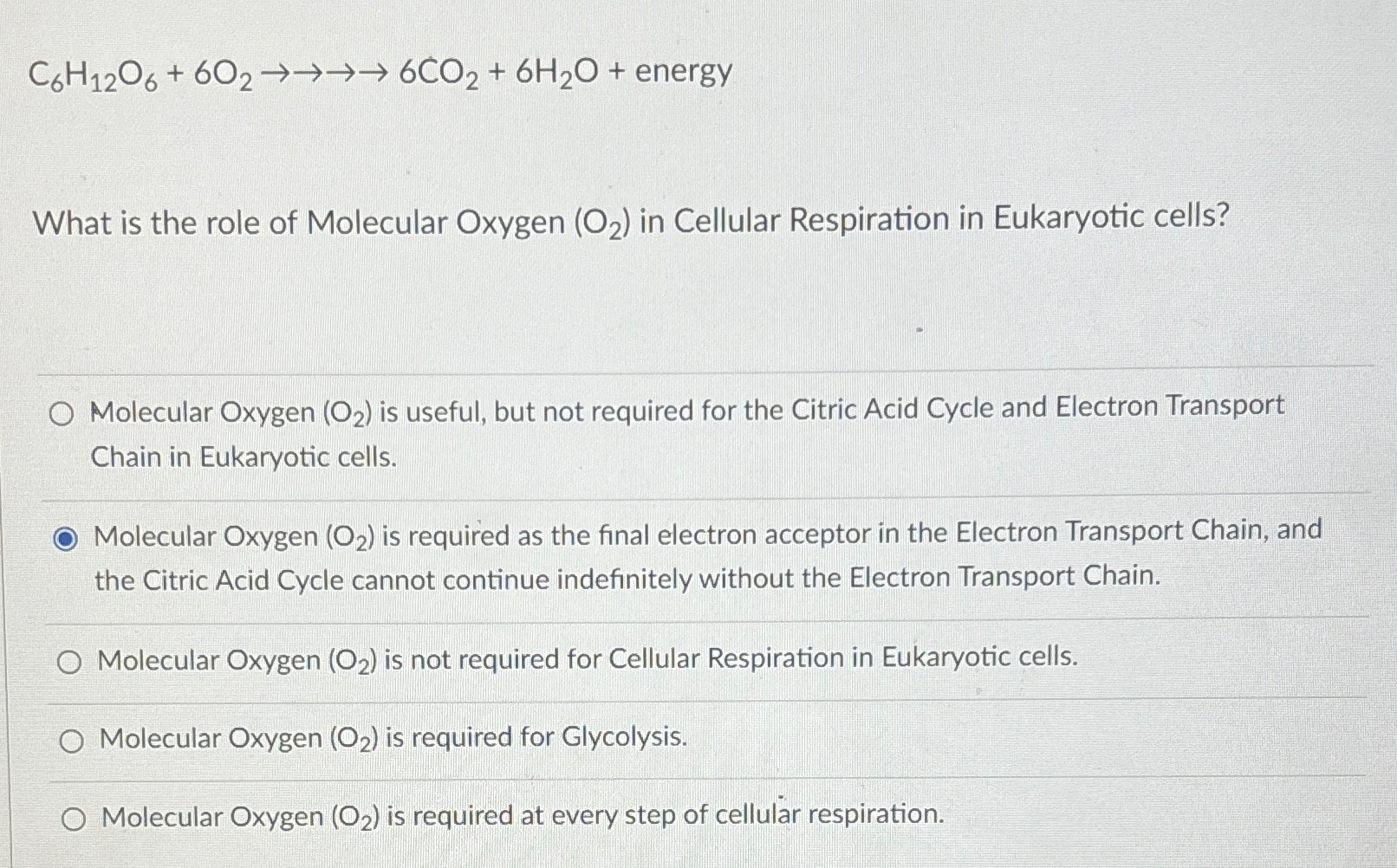 Solved C6H12O6+6O2→→→→6CO2+6H2O+ energy What is the role of | Chegg.com