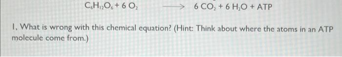 Solved C6H12O6+6O2 6CO2+6H2O+ ATP I. What is wrong with | Chegg.com
