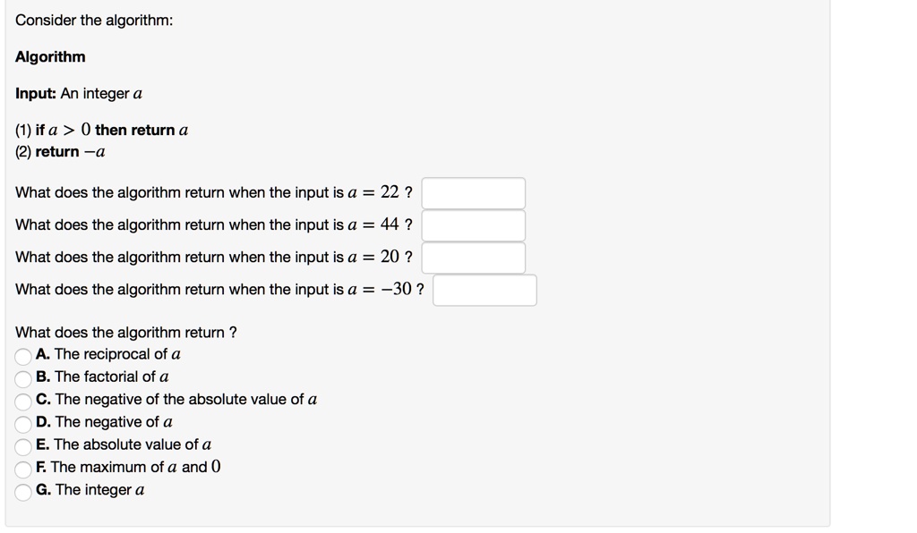 Consider the algorithm algorithm input an integer a 1 ifa 0...
