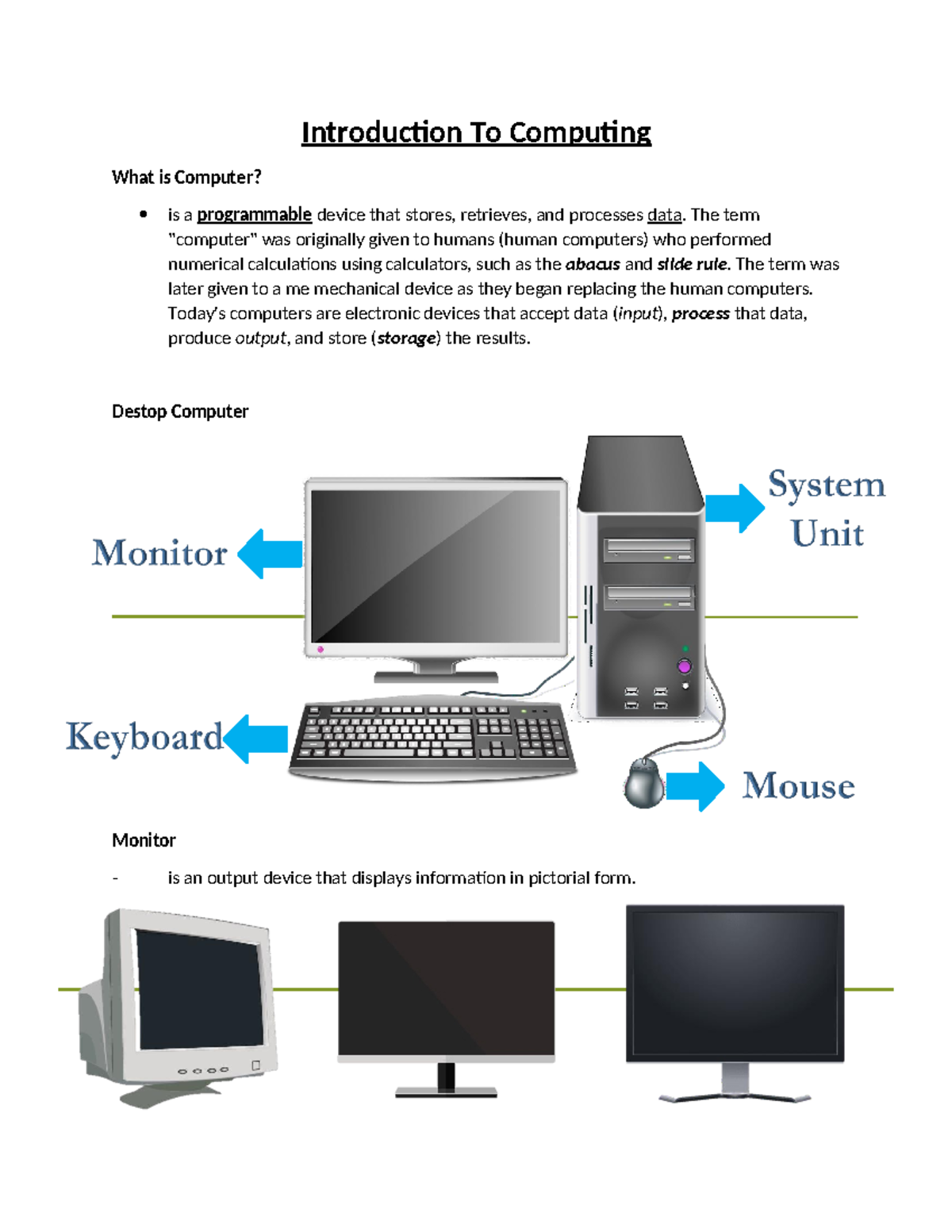 Introduction To Computer | PDF | Computer Hardware | Personal Computers