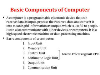 Introduction to Computers: Basics, Components, and Uses | PPTX