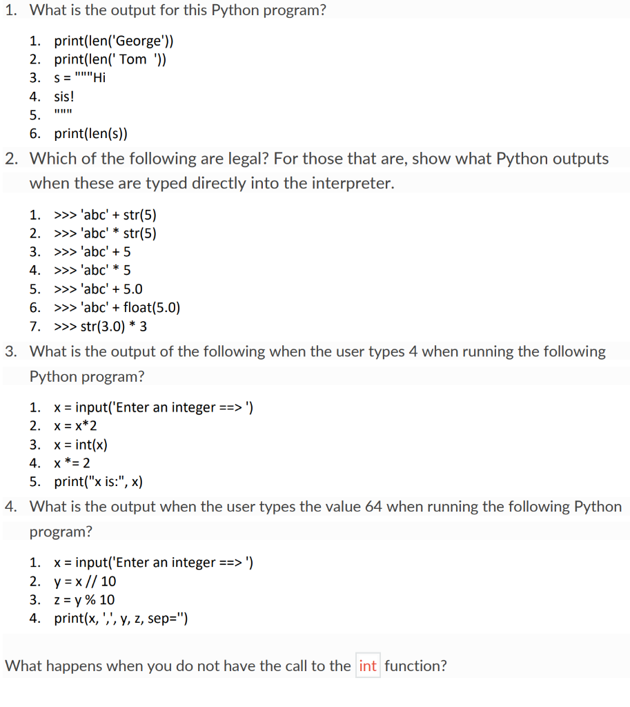 Solved 1. What is the output for this Python program? 1. | Chegg.com