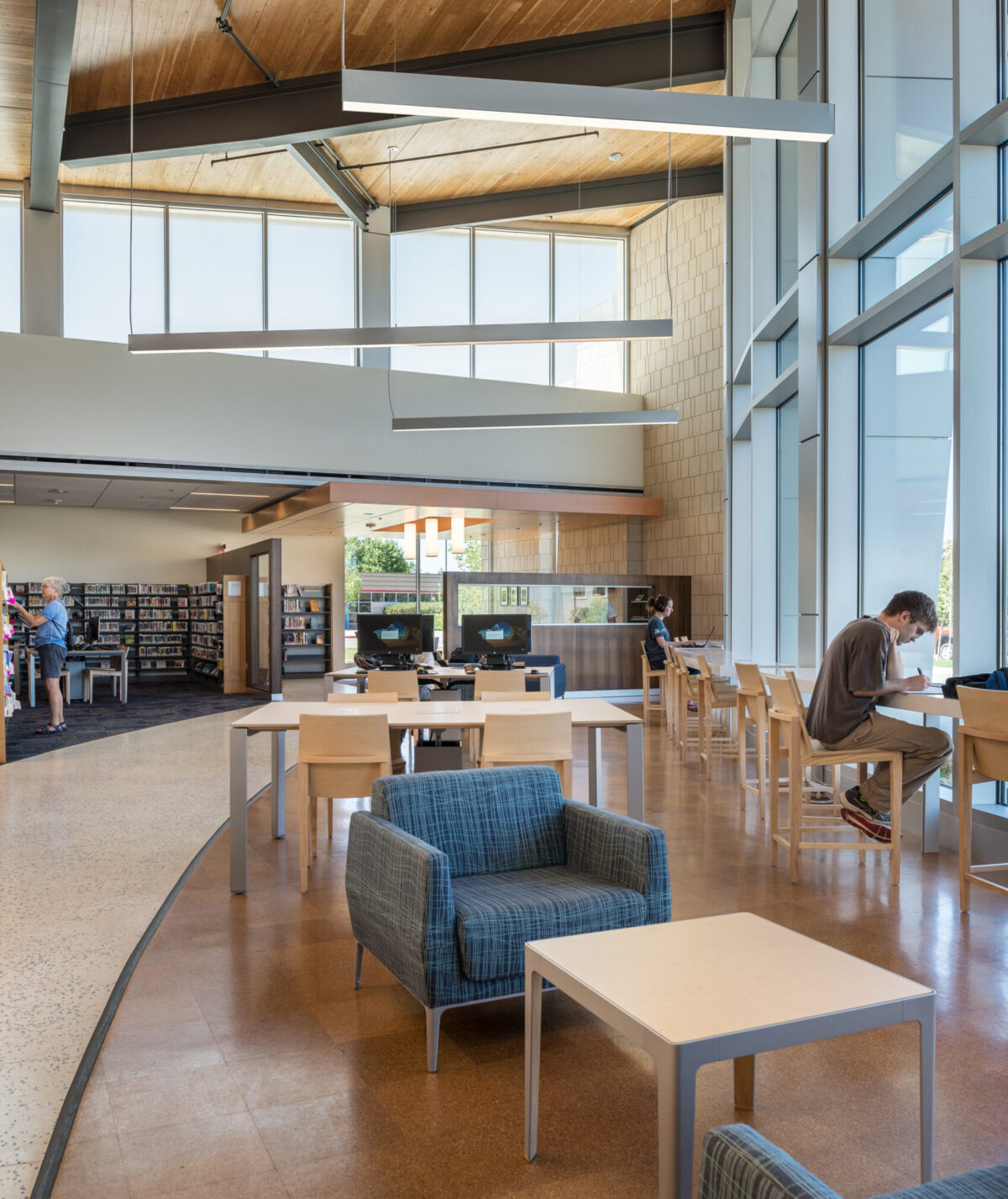 Dynamic library with flexible spaces and durable furnishings that ...