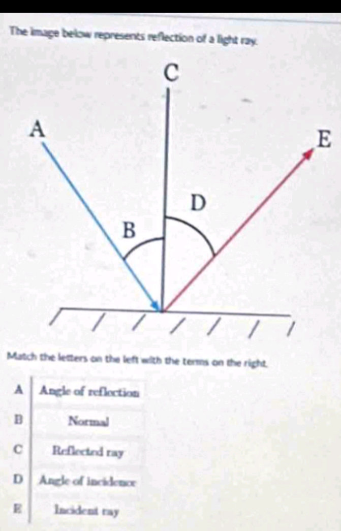 The image below represents reflection of a light ray. [Diagram showing r..