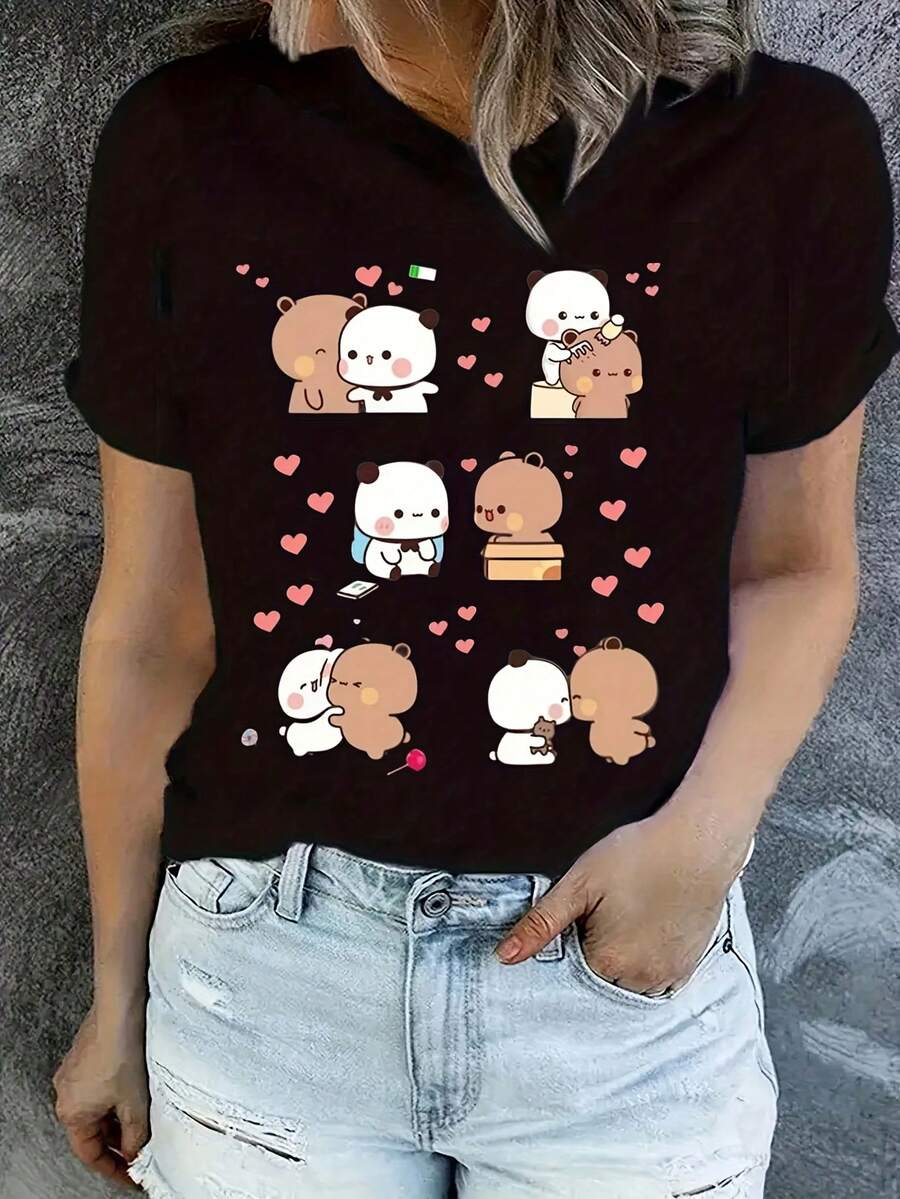 180g Pure Cotton Bear And Panda Bubu Dudu Balloon T-Shirt Valentines ...