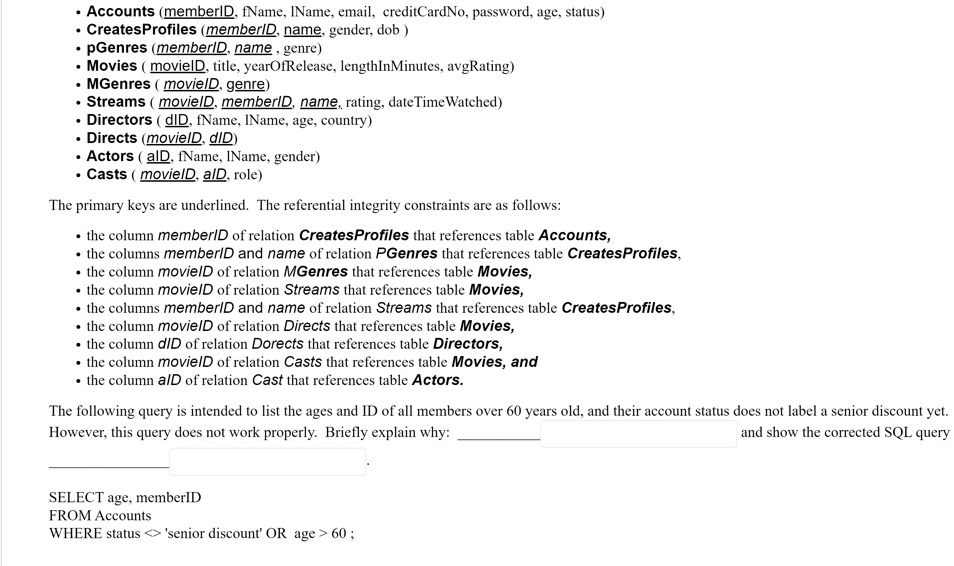 the corrected sql query is as follows select age memberid from accounts ...