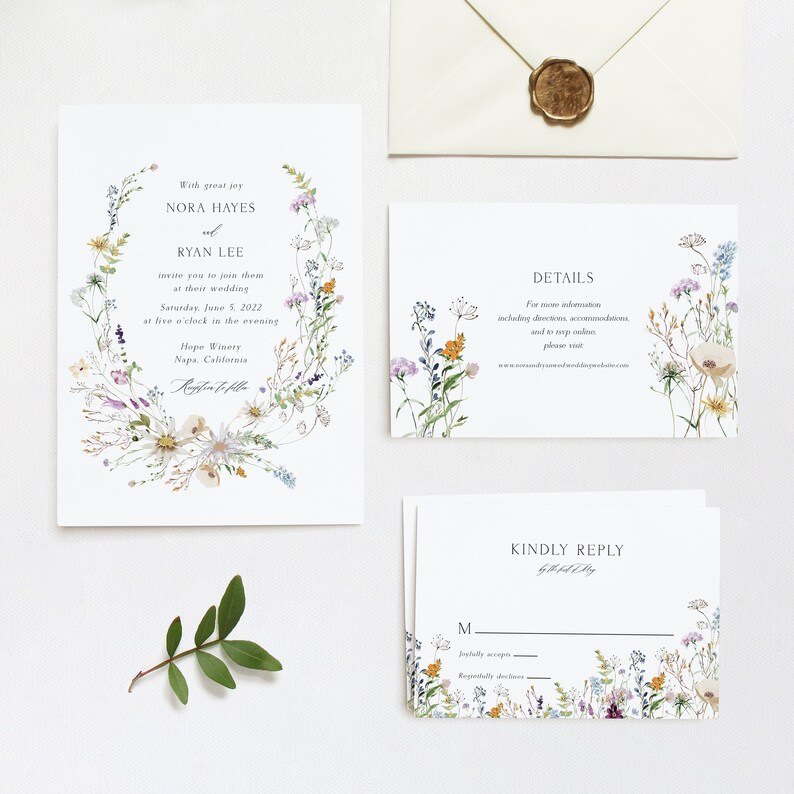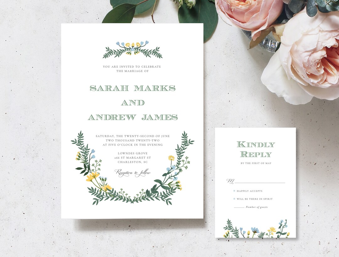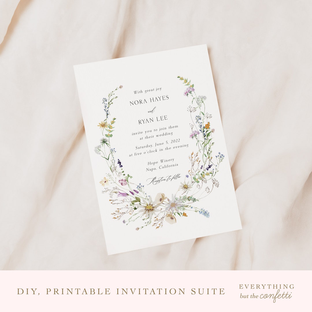 Whimsical Garden Wedding Invitation Template, Wildflower Wedding ...