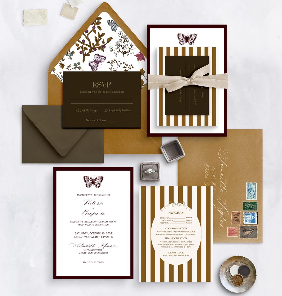 Whimsical Garden Wedding Invitation Bundle|vintage Floral Striped ...