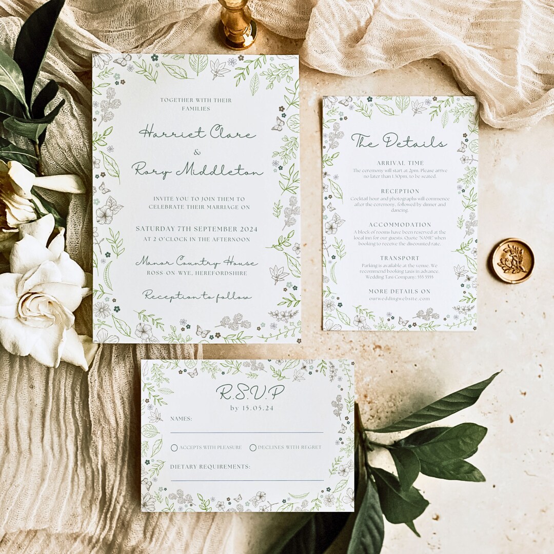 Whimsical Garden Wedding Invitation Suite, Wedding Invites Bundle ...
