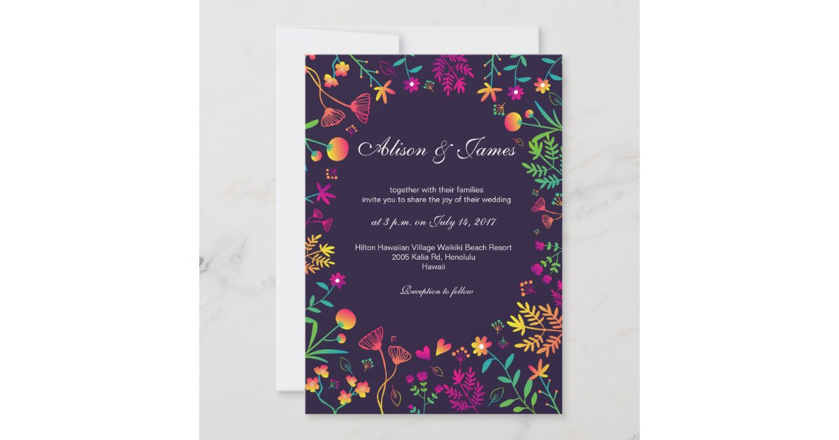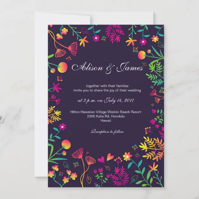 Whimsical Floral Wreath Colorful Wedding Invitation | Zazzle