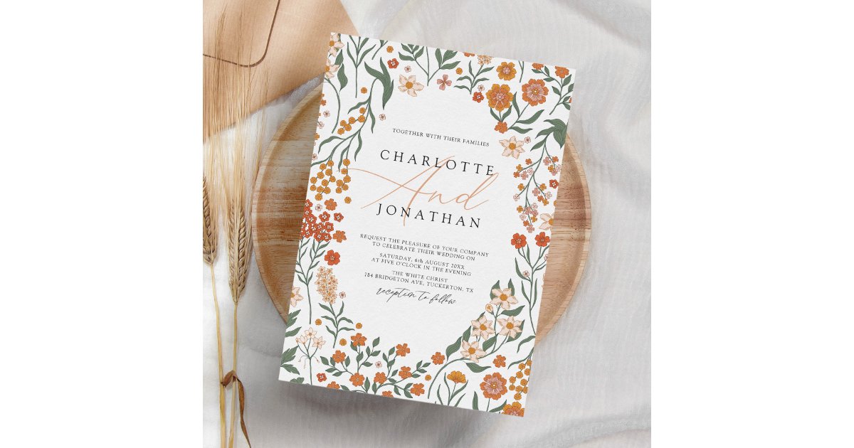 Whimsical Wildflower Wedding Invitation | Zazzle