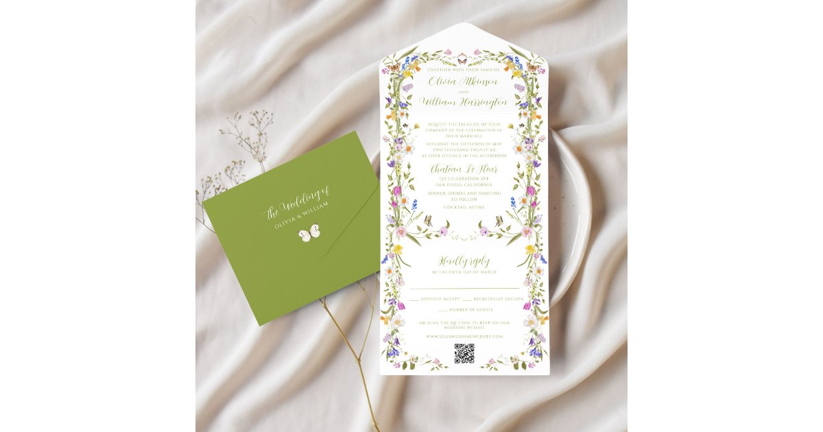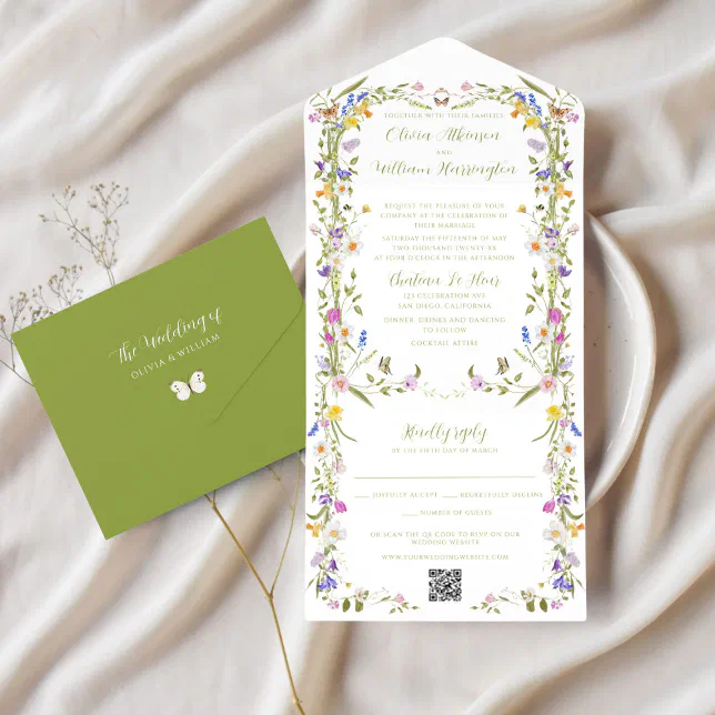 Whimsical Garden Wildflower Wedding All In One Invitation | Zazzle