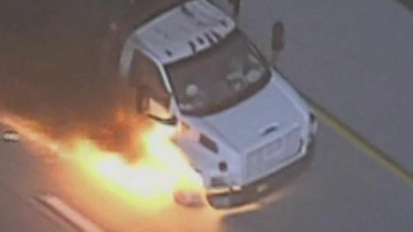 Terrified travellers watch in horror as van explodes in fireball near ...