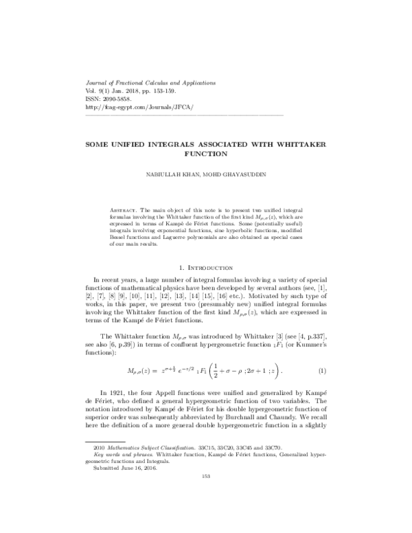 (PDF) Some Unified Integrals Associated with Whittaker Function