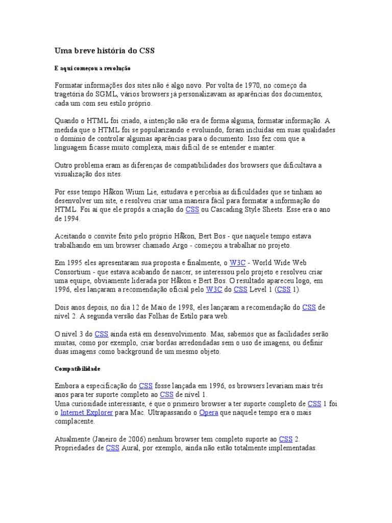 História e Evolução do CSS | PDF | Folhas de estilo em cascata ...