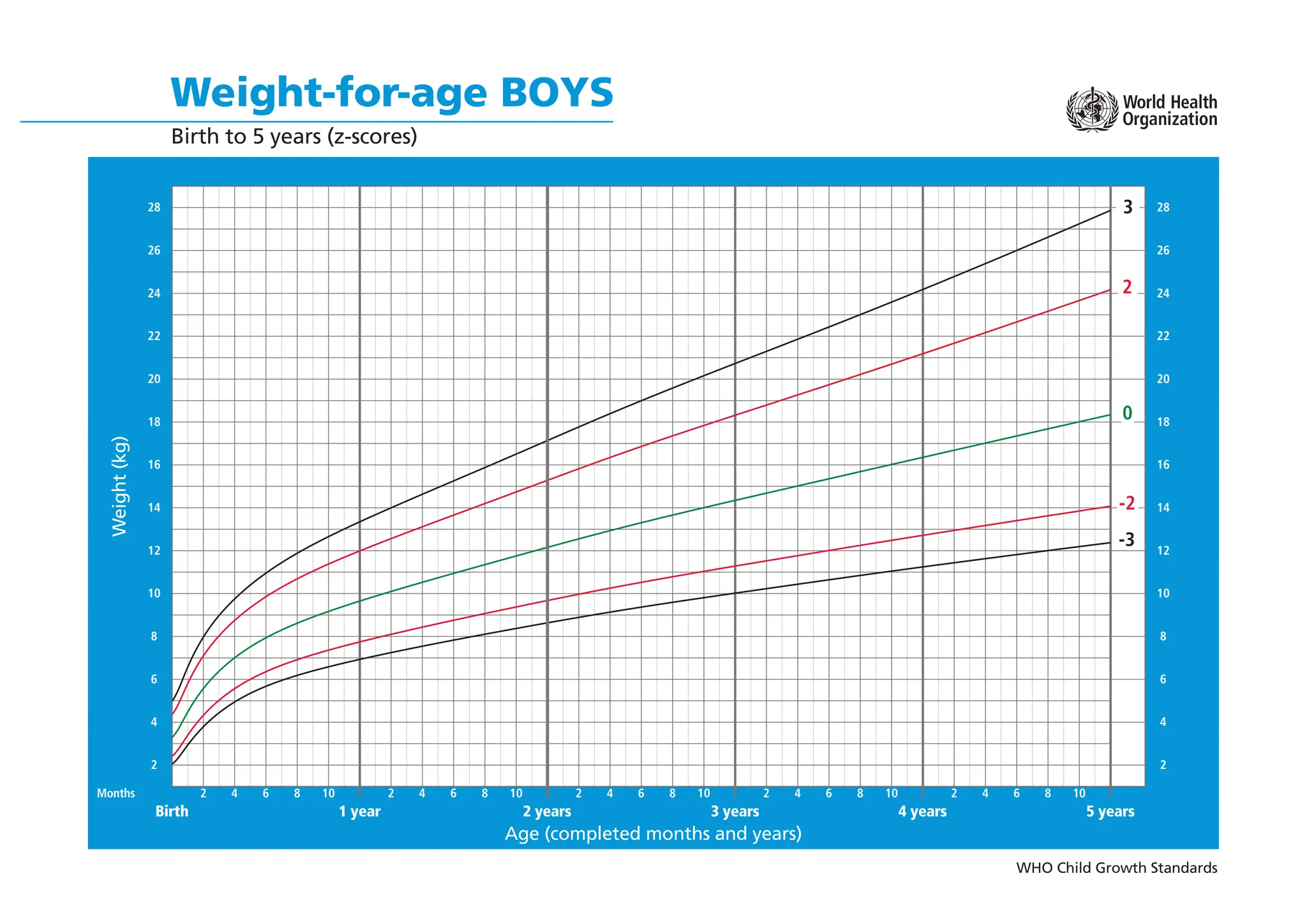 Example of a WHO Child Growth Standards chart depicting weight-for-age ...