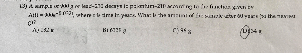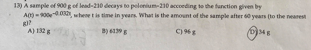 Solved A(t) = 900e-0.032t where t is time in years. What is | Chegg.com