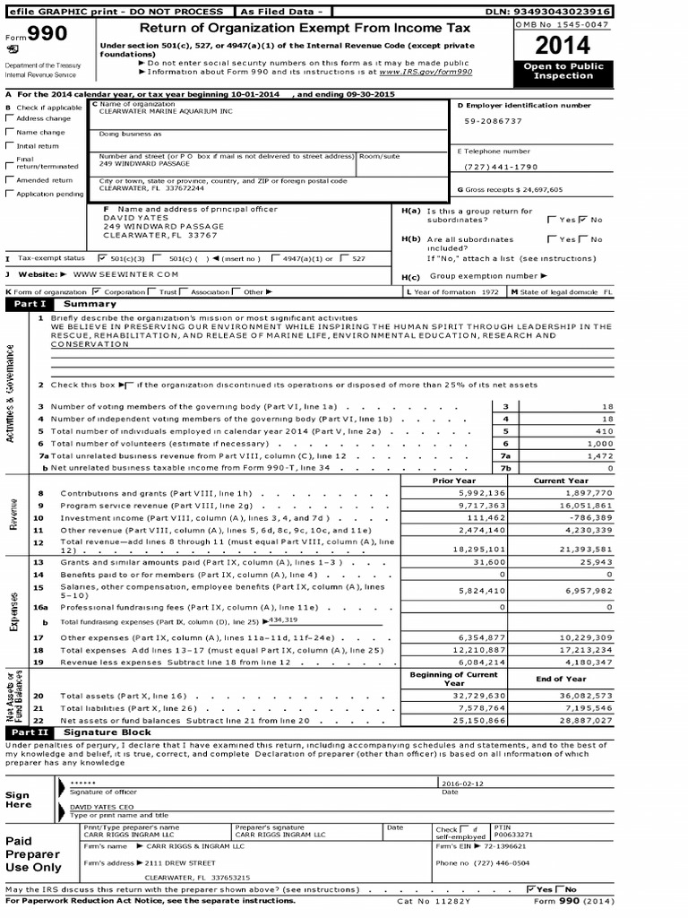 Clearwater Marine Aquarium -- IRS Form 900 for 2014 | Irs Tax Forms ...