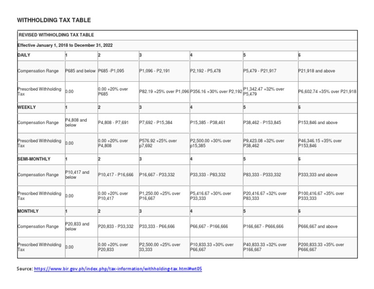 Revised Withholding Tax Table | Bureau of Internal Revenue