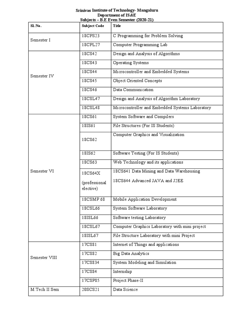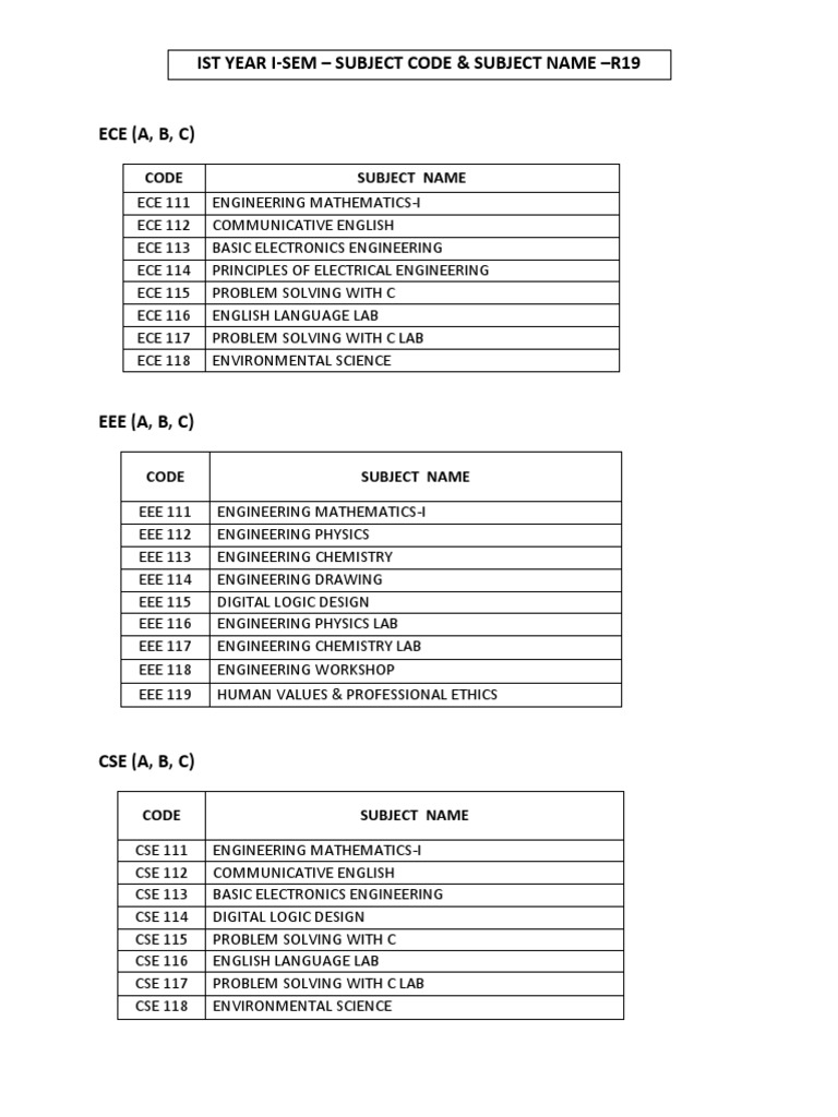 2019-2023 I Year Sem 1 - SUBJECT CODES & SUBJECT NAMES | PDF | Teaching ...