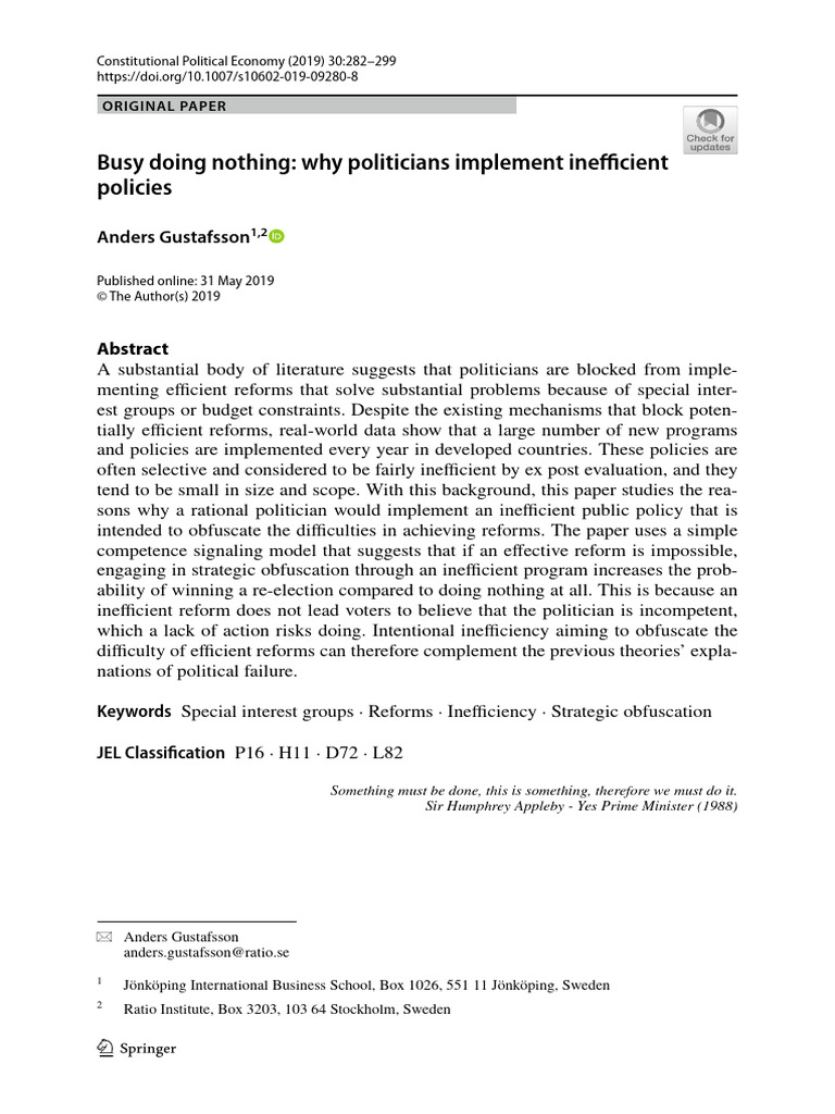 Why Politicians Implement Inefcient - Policies | PDF | Policy | Subsidy