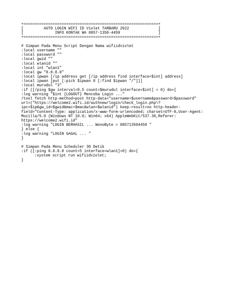WiFi Auto Login Script Guide | PDF