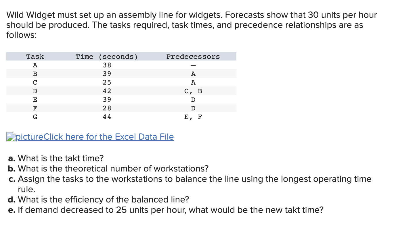 Solved Wild Widget must set up an assembly line for widgets. | Chegg.com