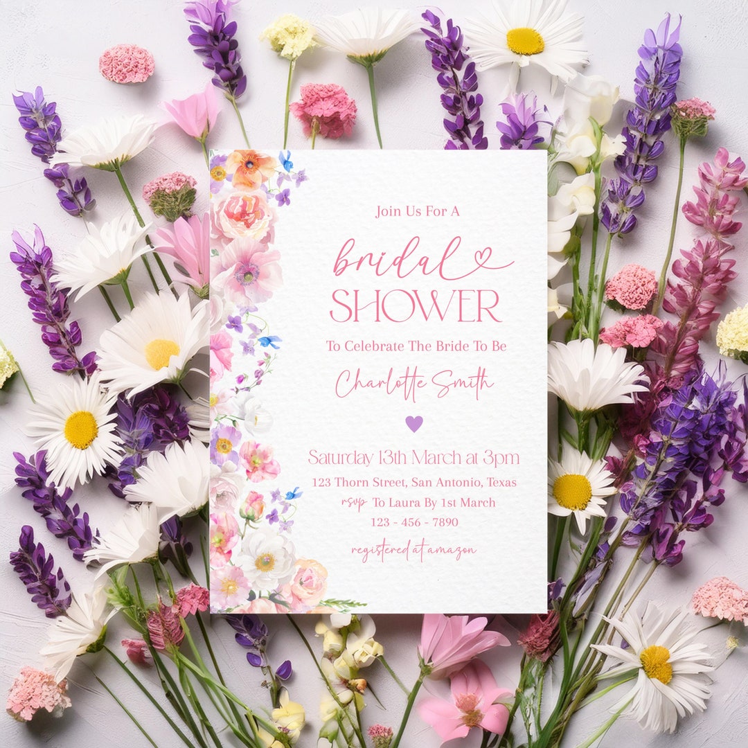 Floral Bridal Shower Invitation, Wildflower Spring Summer Invitation ...