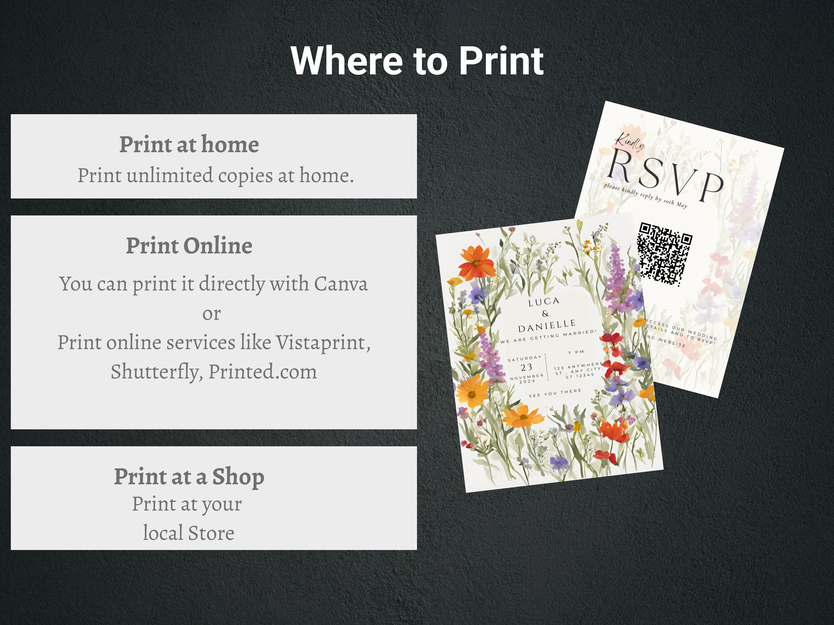 Wildflower Wedding Invitation Card Template, Summer Spring Wedding ...