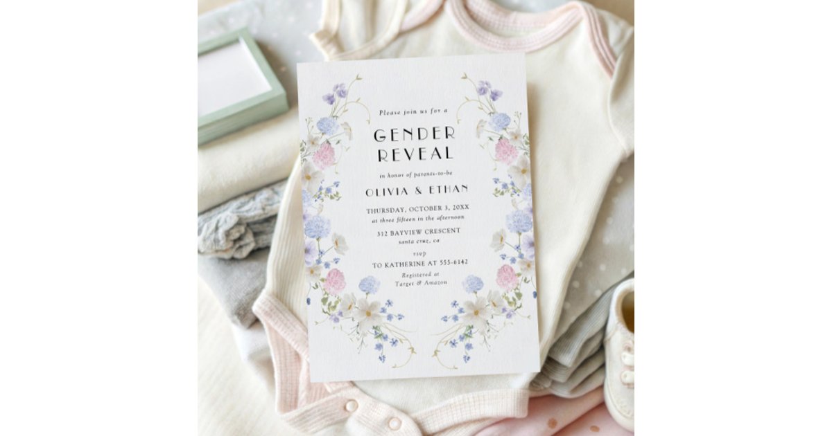 Pink Blue Wildflower Spring Summer Gender Reveal Invitation | Zazzle