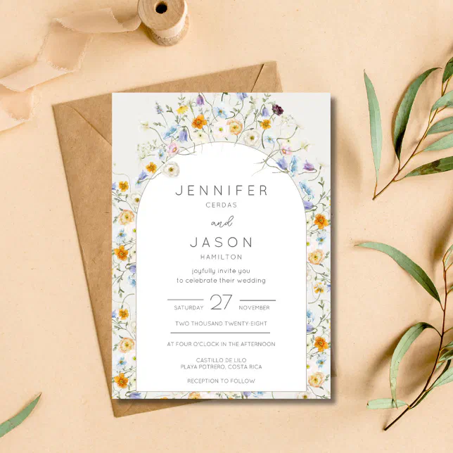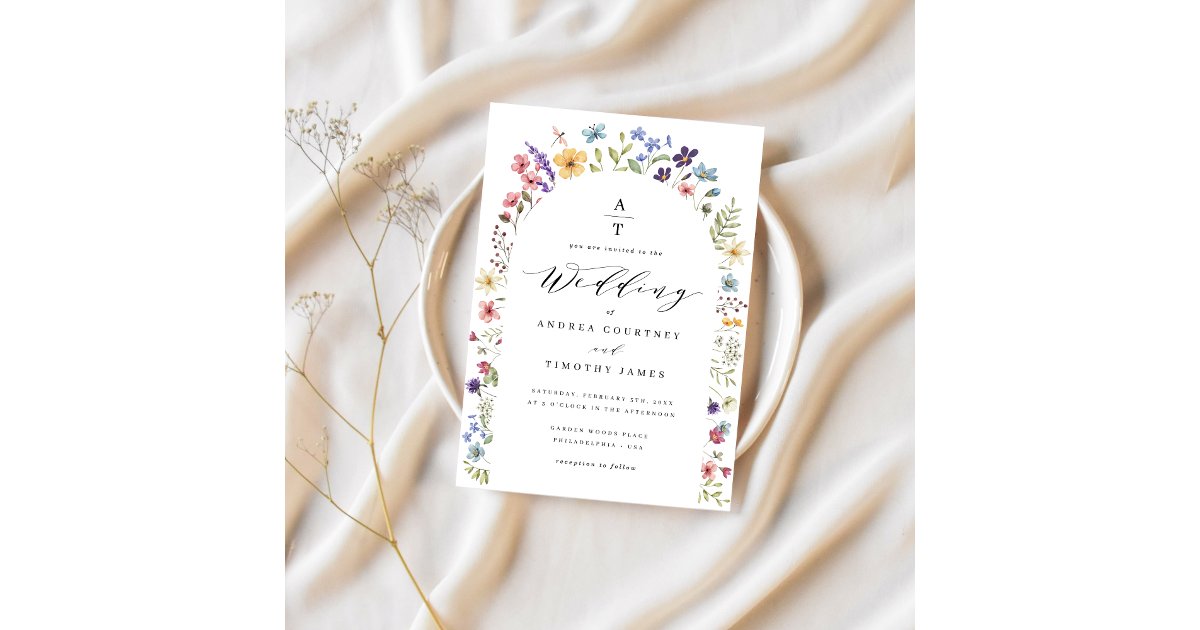 Watercolor Wildflower Spring Summer Arch Wedding Invitation | Zazzle