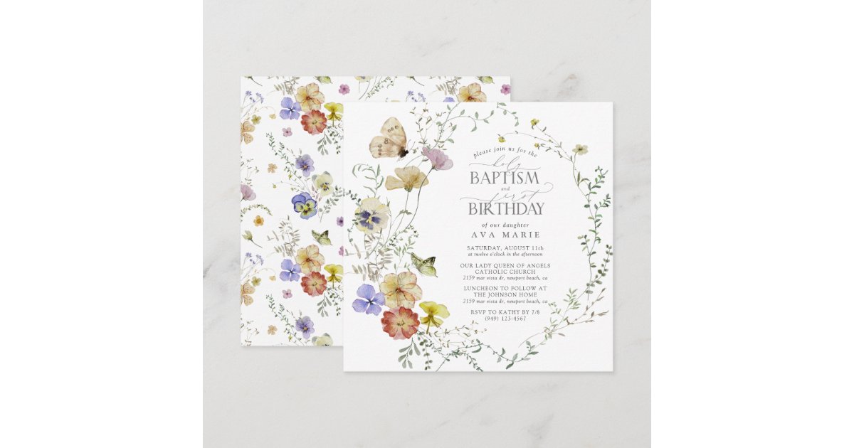 Wildflower Spring Summer Baptism 1st Birthday Invitation | Zazzle
