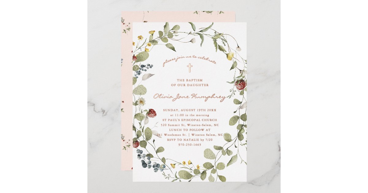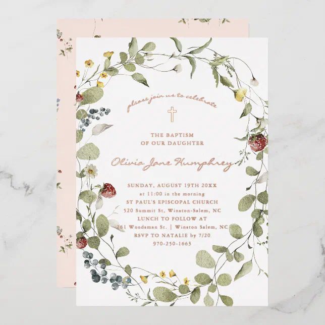 Wildflower Spring Summer Floral Baptism Foil Invitation | Zazzle