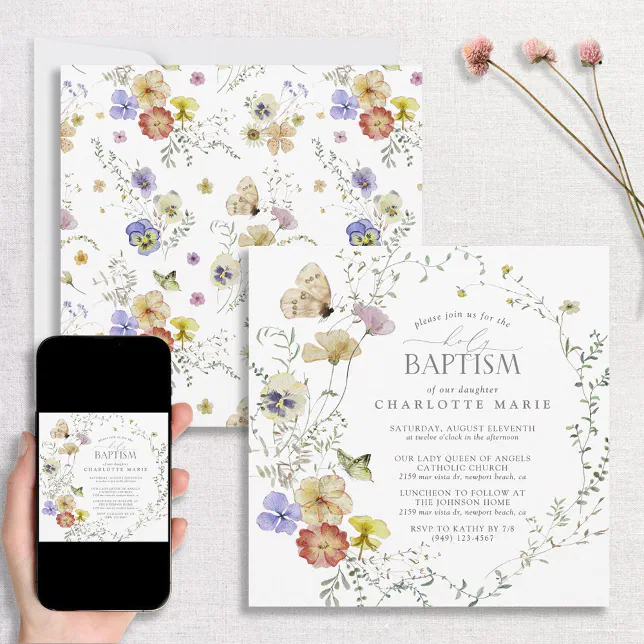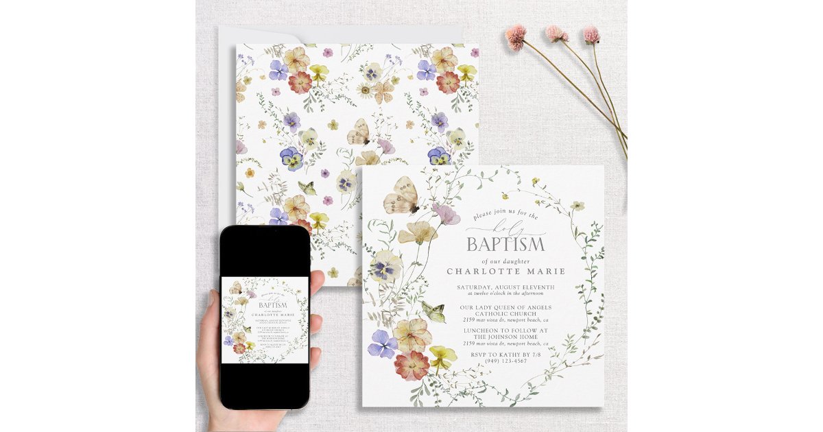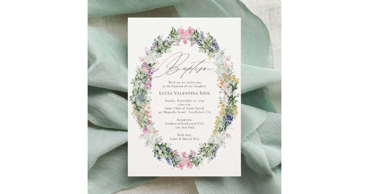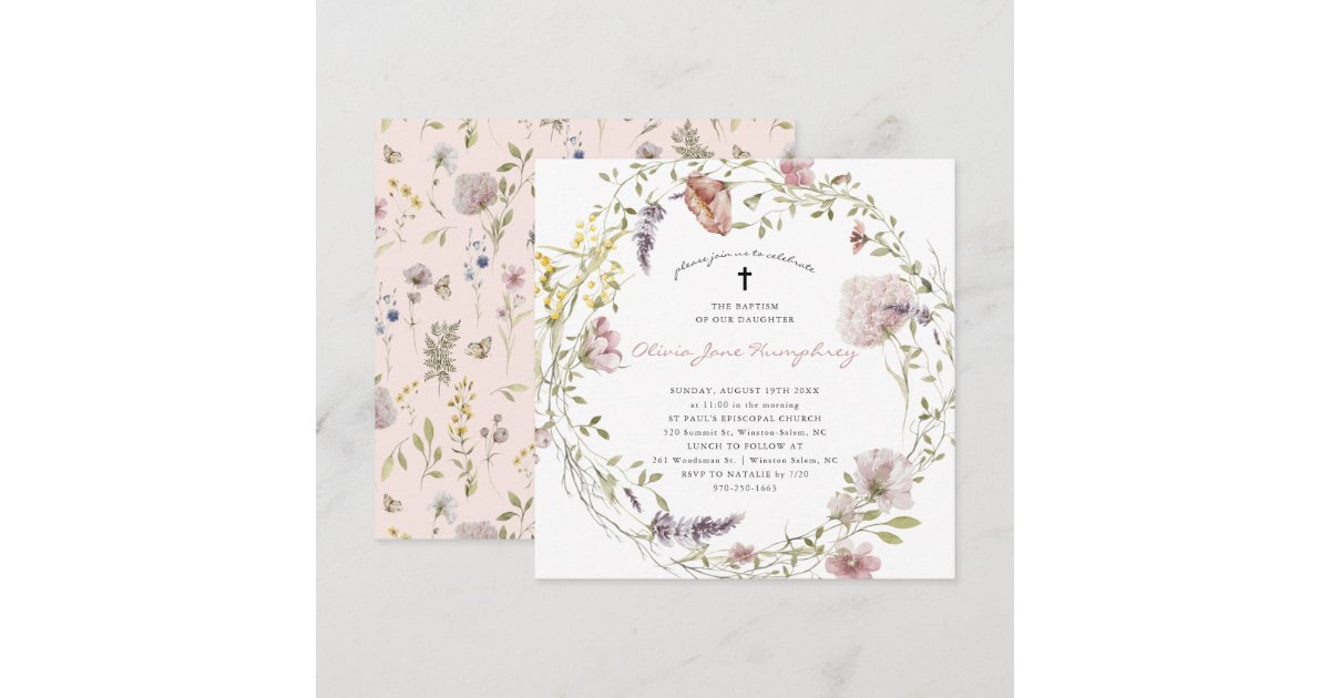 Wildflower Spring Summer Floral Baptism Invitation | Zazzle
