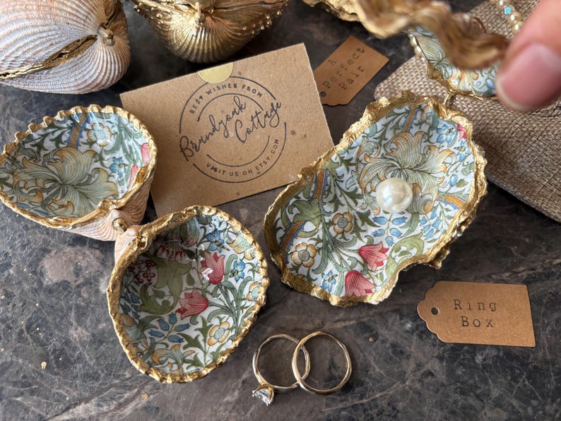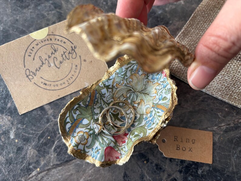 William Morris Golden Lily Sea Shell Ring Box | Beach Proposal Cockle ...