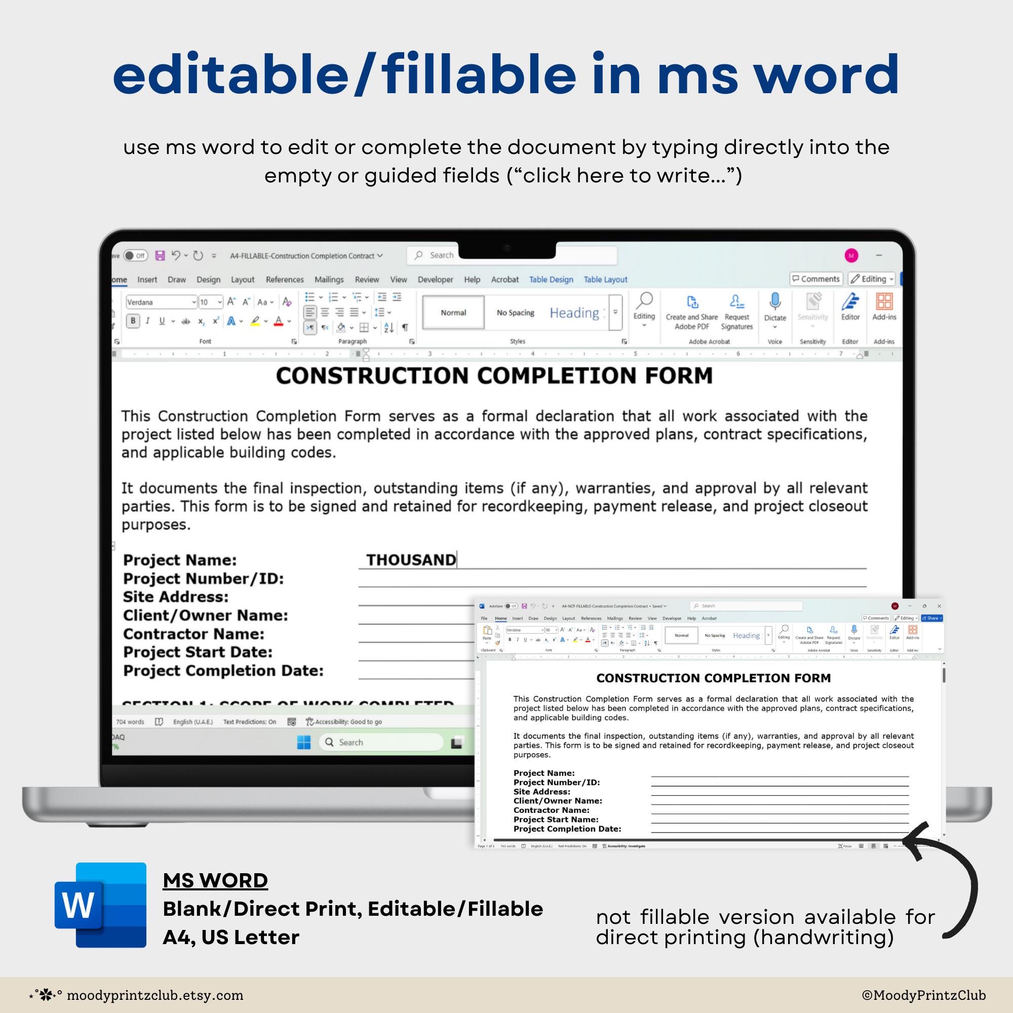 Work Completion Form | Job Completion Template | Editable MS Word ...