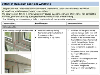 Defects in doors and windows | PPTX
