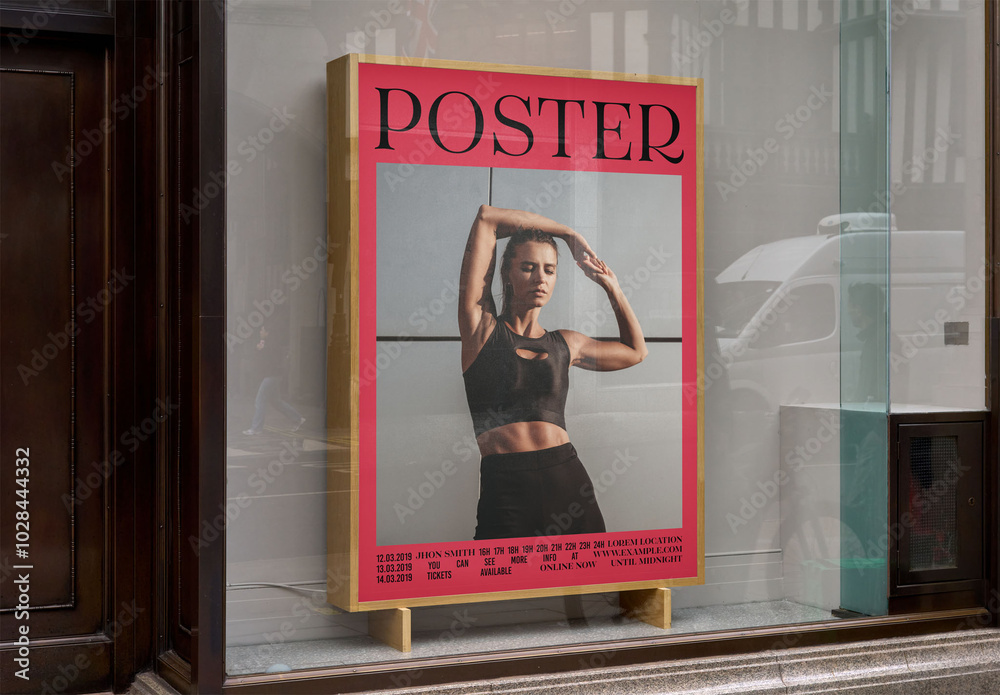 Mockup Of Vertical Customizable Poster In Window Display Stock Template ...
