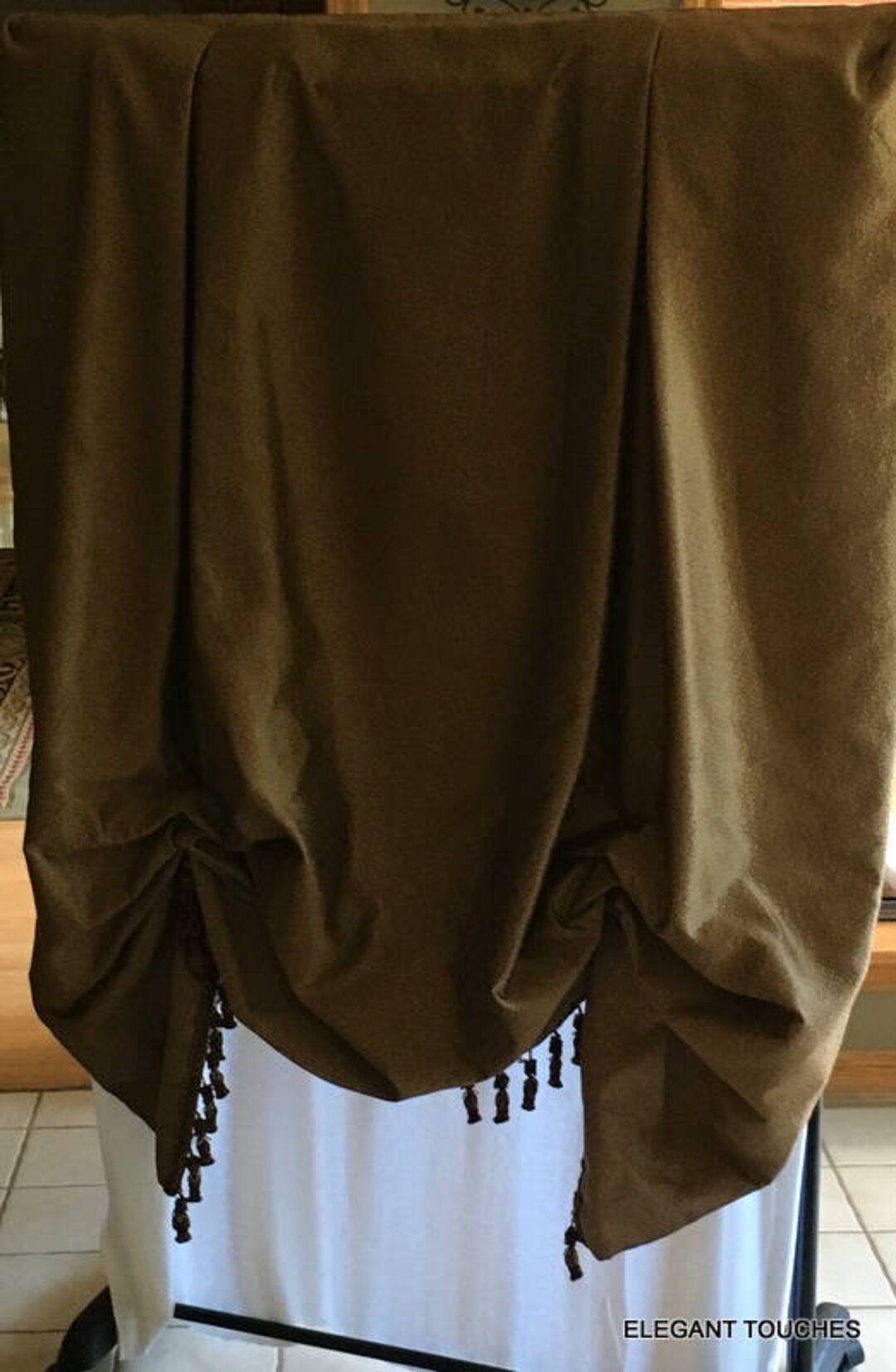 Custom Dark Brown Textured Window Treatment: Board Mounted, Tassel Trim ...