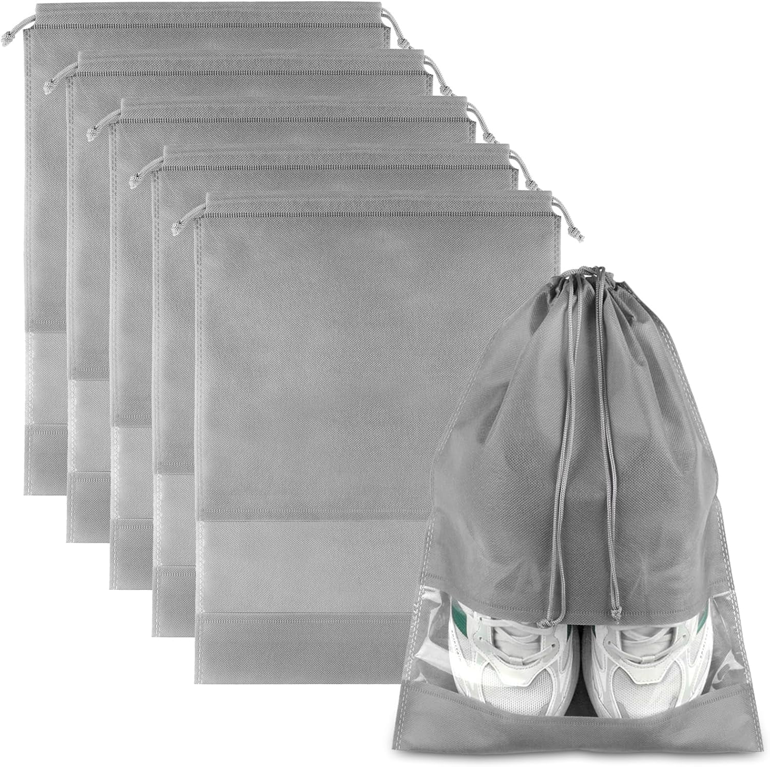 5-Pack Large Travel Shoe Bags with Clear Window - Drawstring Non-Woven ...