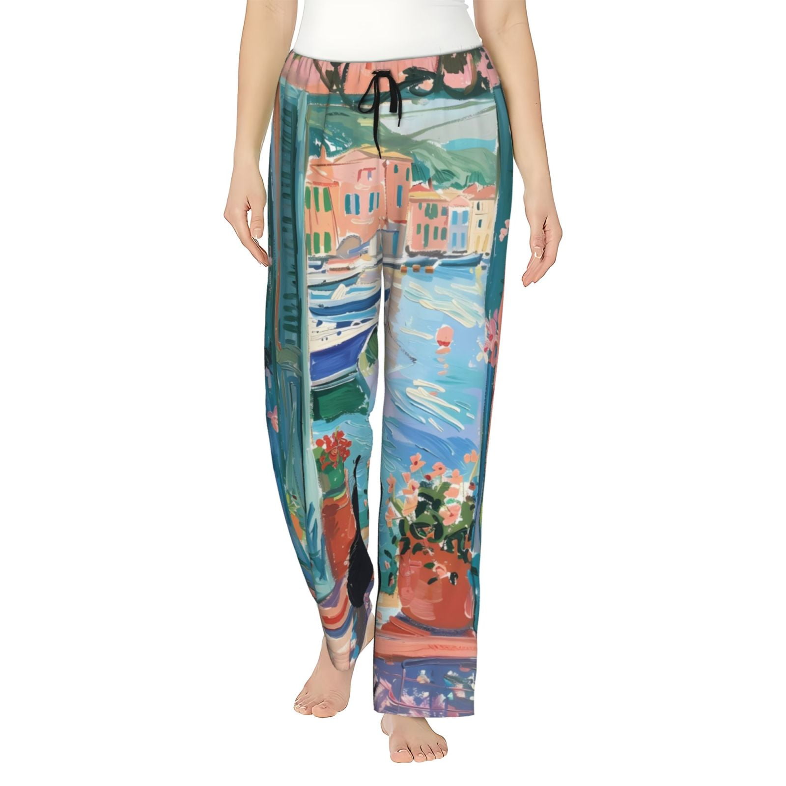 Easygdp Coastal Cat By The Window Women's Drawstring Pajama Pants ...