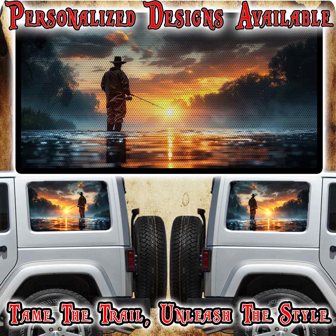 Kraken sunset Rear quarter window see through graphic. – NTXGlow