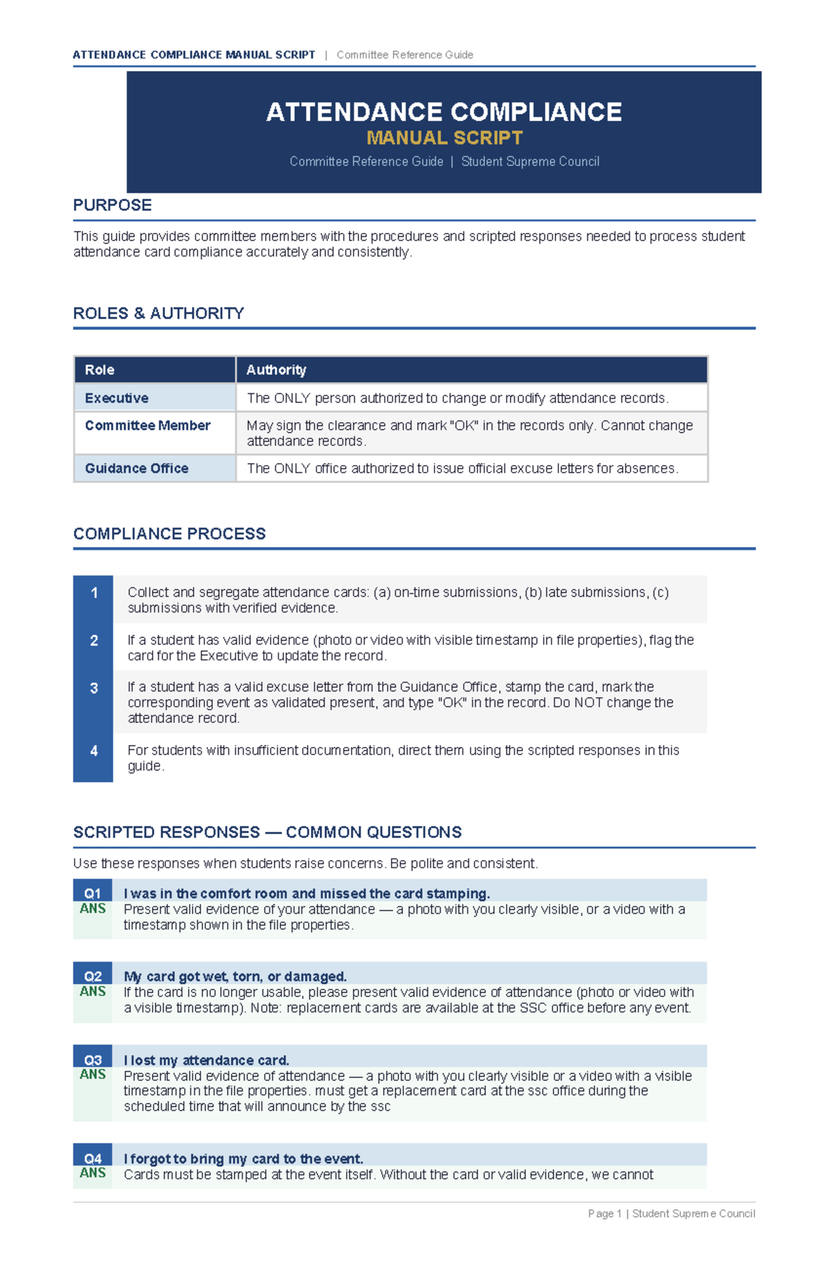 Attendance Compliance Manual: Committee Reference Guide - Studocu