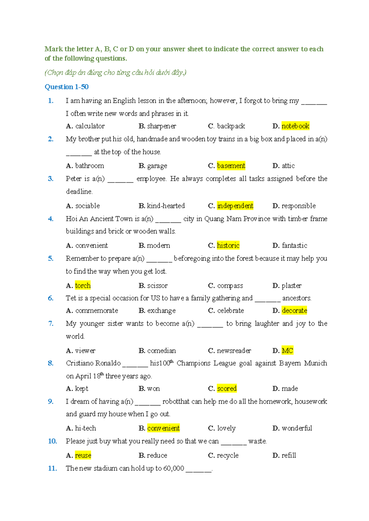 Lexical Test 01 - Reference for Exam 9 to 10 - Studocu