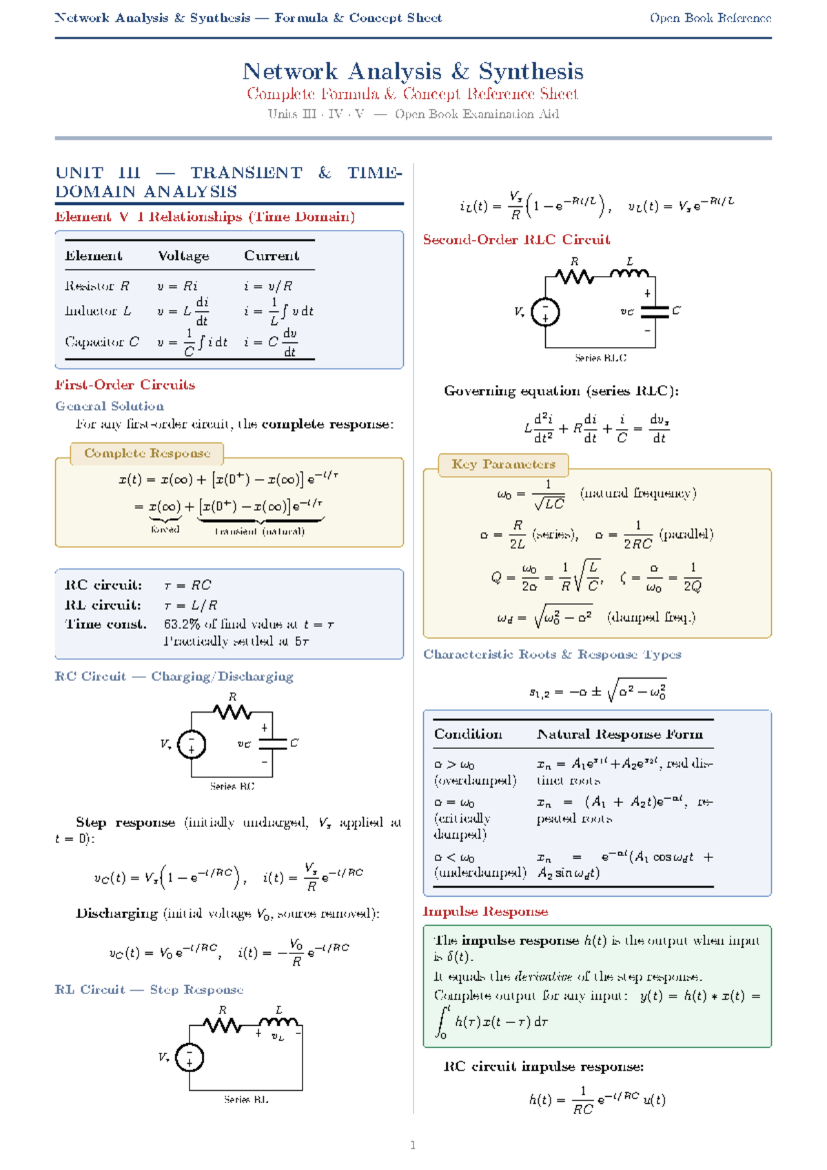 Open Book Reference NAS Formula Sheet for Units IV & V Analysis - Studocu