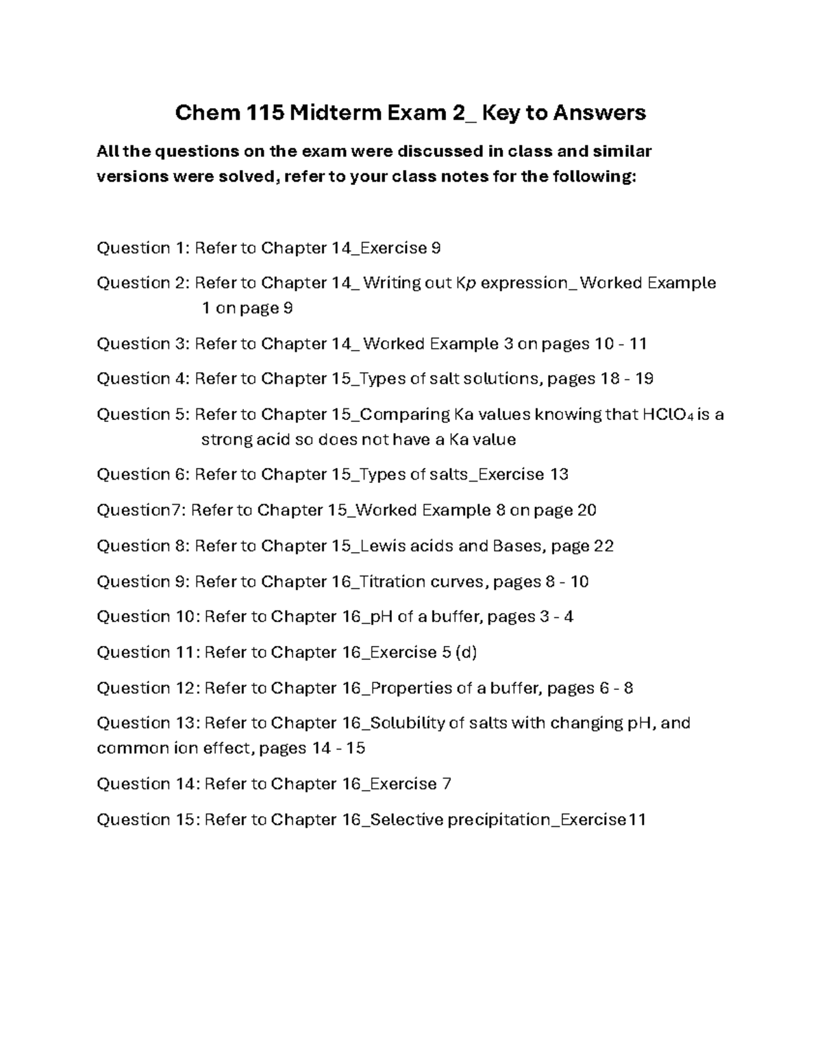 Chem 115 Midterm Exam 2: Answer Key and Class Notes Reference - Studocu